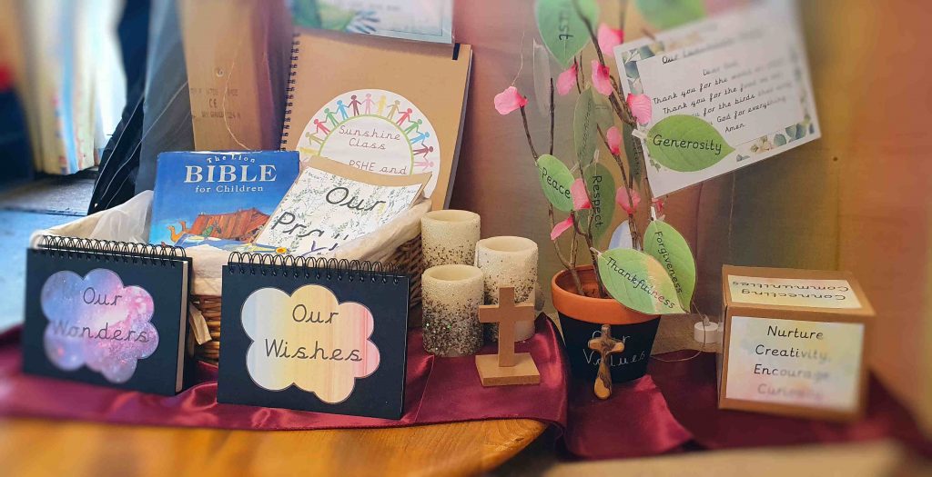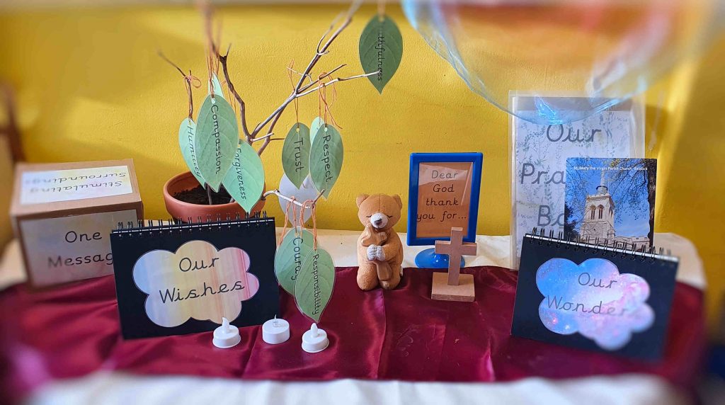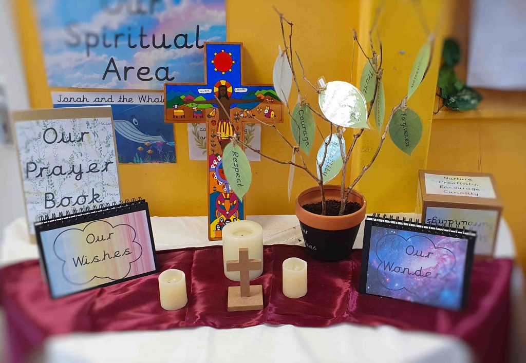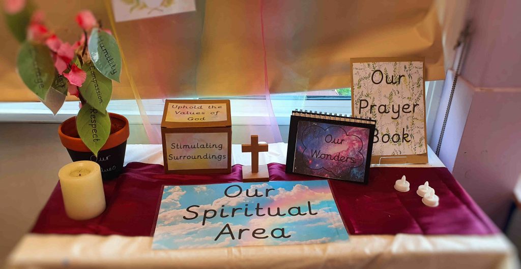 All classes throughout our school contain a Spiritual Area and each is personal to that class and the children who use it. Each area is a focus within the room and is utilised each day with the pupils. The Spiritual Area in your child’s class is central to the class worship.