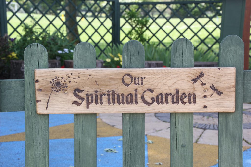 In 2021, our PTA chair, Mrs Rowe, our Caretaker, Mr Boddy, and our pupils worked together as a team to reinvent our Spiritual Garden. The beautiful new sign is made from reclaimed wood. It has been given a second chance – just like our garden!