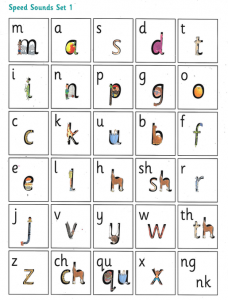 Set 1 Sounds are taught in the following order together with rhymes to help children form the letters correctly and instantly recognise sounds ready for blending. Please do not use letter names at this early stage. Children will also use pictures for each sound to help recognise the sound and then form the shape of the sound.